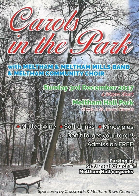 People of Meltham and beyond, please join us on Sunday 3rd December at 4pm for Carols in the Park followed by the big switch on of the Meltham Christmas Lights.
