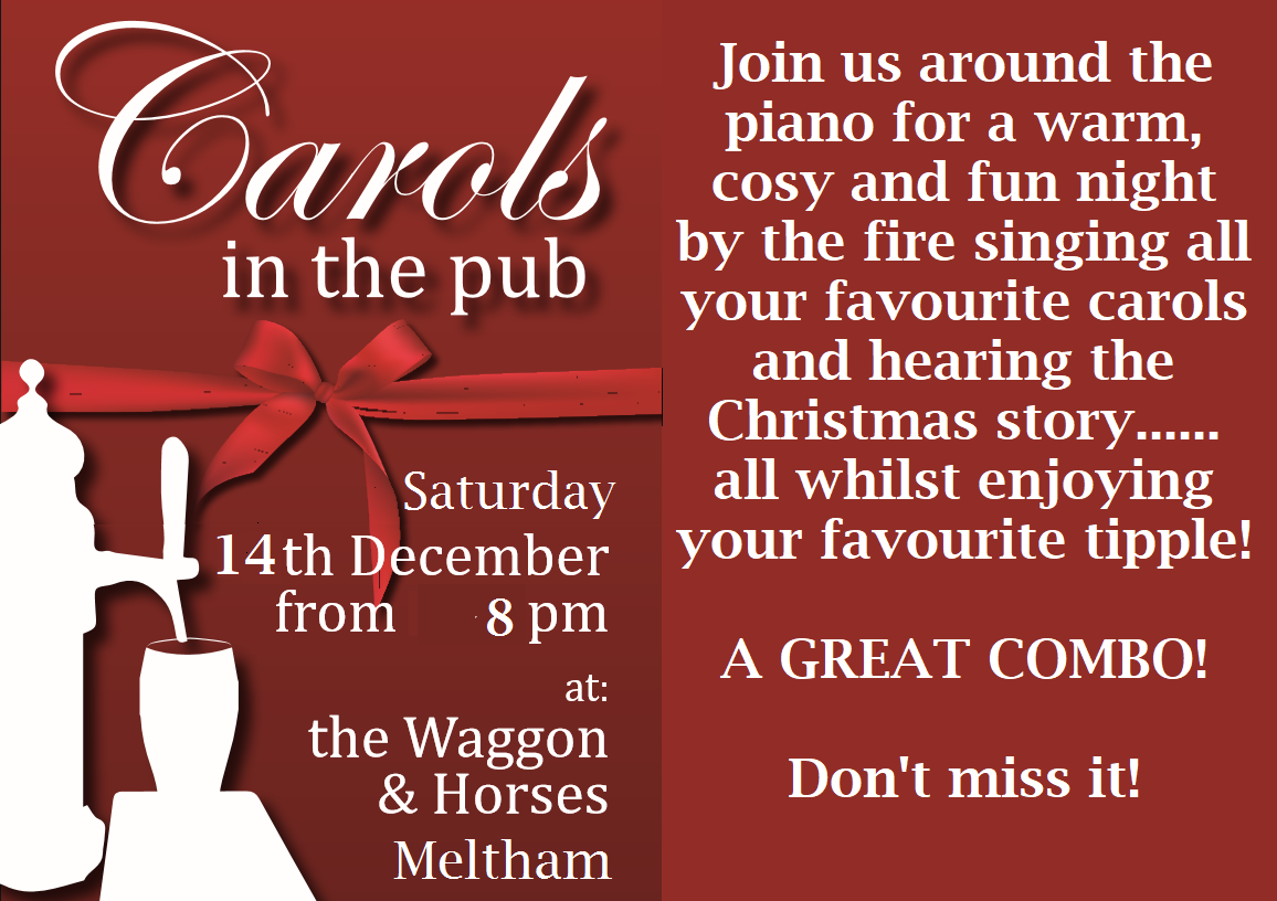 Carols in the Pub! – Waggon & Horses, Meltham – Tonight (Sat 14th Dec) from 8pm.